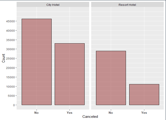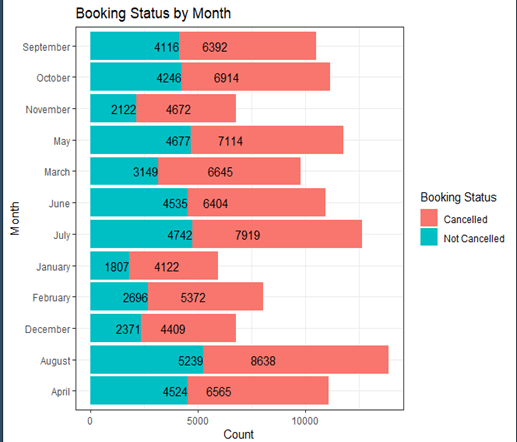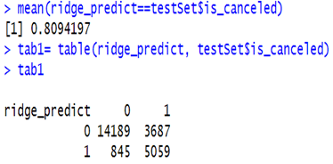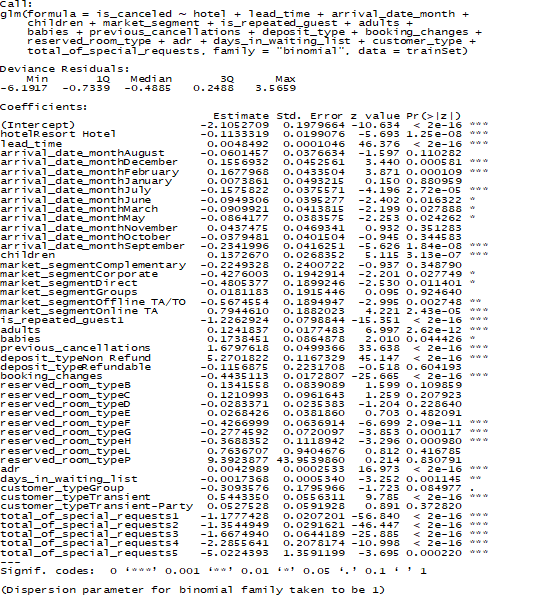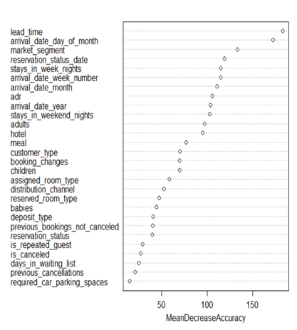 •Model was build using all the independent variables except for the reservation status and date column to predict the booking cancellations.