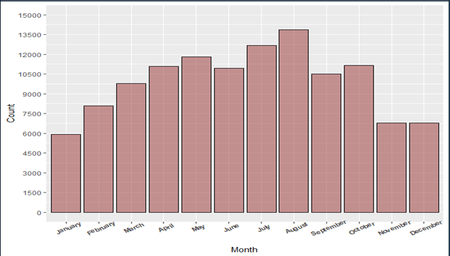 1.Number of bookings made were highest in the month of July and August and lowest in January.