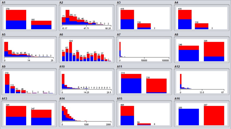 Initially, in visualization the distribution of the 15 base attributes with the Class=” A16″ has been considered. As it shows in Figure 3 most of the attributes are well distributed among 2 classes. when considering “A8” and “A11”. those attributes have a clear bias which helps a lot in classification.