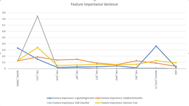 When carefully analysing the co-relation matrix, a strong correlation can be seen between due amounts of July to December. But when considering the required prediction, only payment amounts were mostly co-related. All other parameters fall under 0.07 per cent of co-relation with the required prediction. Since the co-relation values rely only on statistical representation it shows the requirement of machine learning approach to resolving the underlying complex pattern.