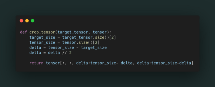 now we got the size of both the images we will subtract the size of lower tensor'target_size' from bigger one 'ternsor_size' .Suppose target_size=56 and tensor_size=64 so delta(subtracted size) will be 8