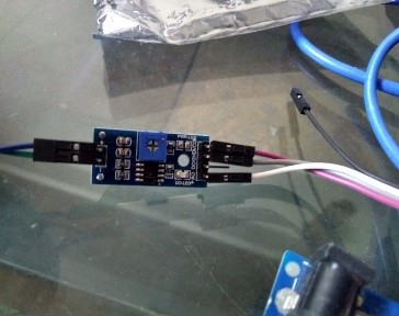 This module was relatively smaller and was tested in small field of just 10–12 plants. Soil sensors were planted in the field at a specific distance (25–10 cm) apart over the entire filed. The sensors were connected to their circuit board(Fig 11) which consisted of the 4 pins(AO, D,O gnd and Vcc). Vcc was for voltage input and gnd was for ground. AO and DO were for analog and digital outputs respectively. Digital would give an absolute value in 1 or 0, depending on whether the sensor recorded some moisture whereas Analog could give us the percent value of moisture recorded in the soil.