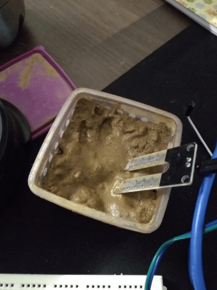 The threshold I’ve set here is 40.0, that is if the moisture at any particular area, where the soil sensor is installed, falls below 40%, a notification by SMS would be sent to farmer and the script will trigger the Arduino Board to spray water to the area by powering on the attached motor and stop as soon as the required moisture level is reached. Fig 13(a and b) show the different scenarios of the soil in an indoor test before and after the trigger.