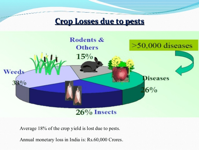 So, the proposed solution presented in this document FARM-SIS, is a direct approach to develop a product that will help India save the annual losses it suffers in the agriculture sector that ranges from 50,000–60,000 crores. Although not thoroughly tested on real life scenarios yet, we did deploy the project on sample farms for results and did get some outstanding results. Many farmers do not have subtle knowledge about the usage patterns and spray instructions of using the insecticides/pesticides over crops. Fig 14 shows an estimate of reasons and their contributions to the crop loss that India suffers each year. It is very clear from the graph that minus the damage done by weeds(unwanted plant growth amongst the crops), the major contributors to the crop losses are due to insects(26%), diseases(26%) and others such as rodents and other small pests(15%). If we for once assume the absolute removal of such problems, that will solve about 66% of the issues pertaining to crop losses. Though it may seem a bit far-fetched, it is high time that work is done in this domain as well.