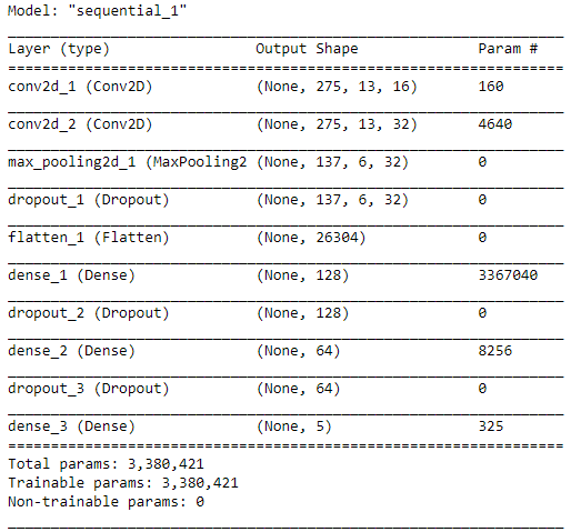 When we run model.summary(), the details of this architecture appears like the following figure. We can see here that the number of params is pretty large.