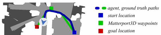 To train such task, they used a total of 4475 trajectories split from the train and validation split. For each of those trajectories, they provided multiple language instructions and an annotated “shortest path ground truth via low-level actions” as seen in this image.