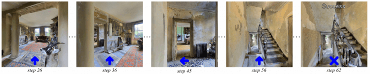 Just to give a comparison, current state-of-the-art approaches move between panoramas and cover 2.25 meters on average including avoiding obstacles for a single action.