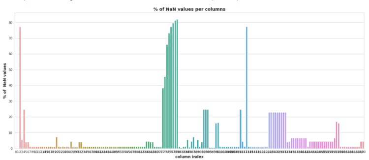 That’s why we have to find the optimal threshold percentage value by looking at this plot, so that we remove those columns which carries Nan-value percentage more than that choosen threshold and replace the Nan-value with constants in rest of other columns, But..
