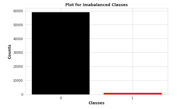 Here in this class imbalaced plot, we can clearly notice that classes are highly imbalanced , we have only 1000 positive datapoints which carries the data values when the equipment failure was occured, so we know that machine learning model becomes easily biased and produce very low recall value for minority class when we carries the class imabalaced problem in our dataset