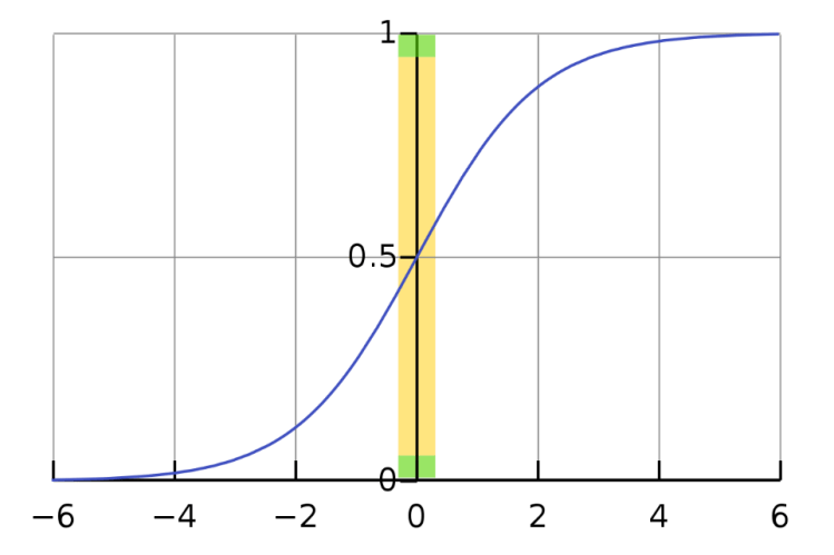 Here’s a graph of sigmoid activation function that we implement in the very last layer in our neural network. The output colored in green (>0.95 and <0.05) represents the sample distribution that we are going to use for the next training process.