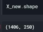 After running the code above, we can try to print out the shape of X_new to find out the number of remaining samples. Remember that initially all folds contain 5000 data, but here we only got 1406. This output value indicates that 3594 texts are predicted with relatively low confidentiality score.