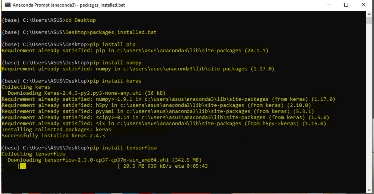 We are blessed with the innovation of the technology and as a result now we have pre-defined packages which will take care of the calculation by itself. There is numerous way by which we can install the packages but the most convenient way is to make a .bat and .txt file and run by the help of bash command in cmd or in anaconda cmd.