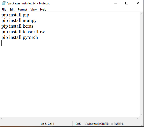 Step: 2. Inside the file name as packages_installed.txt write the packages.(For example, I have listed few packages you can try and add more as per your requirements)