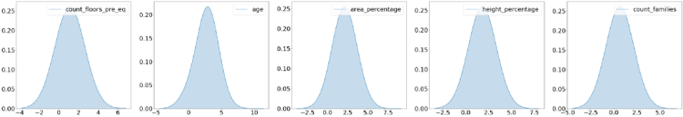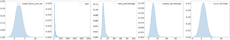 The graph below shows the result of these operations. All distributions look much less skewed and do not exhibit the unwanted obscurely high values which we had before.