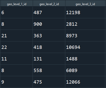 These geo-identifiers in their initial state are given in a simple numeric format, as can be seen below.