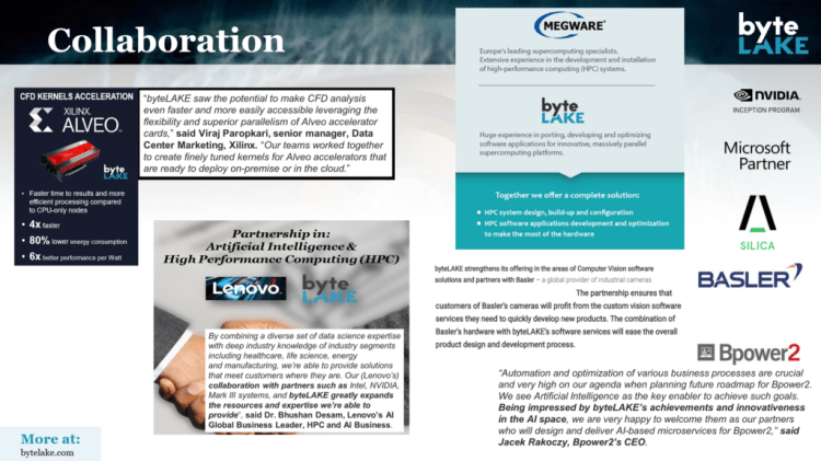 - ?? Solution delivery naturally follows and in our case this is done in Agile sprints, meaning you get results every 2 weeks. One thing worth mentioning here is that we have established a strong research practice for a reason. It happens that most of our clients come with requests where we hardly ever can build an AI system purely from ready-made components. Although computer vision as a technology has already a bucket full of various libraries, track of projects and what have you, at least our projects very often are far more ambitious than what the off-the-shelf components have to offer. Besides, our experience in a very closely related area called HPC (High-Performance Computing) helps us deliver solutions that are truly scalable and produce results efficiently at every stage of the AI application lifecycle: training (=when we teach the algorithms to do certain things) and inferencing (=when the algorithms do their work).