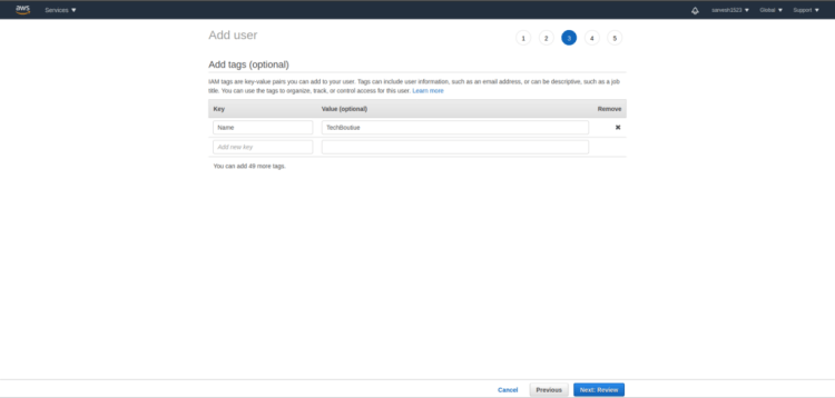 - Click Next Tags and add appropriate tags. Ex – Name: TechBoutique