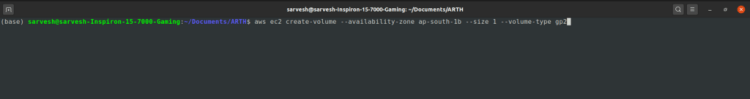 aws ec2 create-volume --availability-zone ap-south-1b --size 1 --volume-type gp2