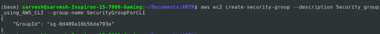 aws ec2 create-security-group --description Security_group_using_AWS_CLI --group-name SecurityGroupForCLI