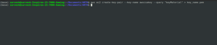 Here we will create a new Key Pair using a AWS CLI, and save the private key(.pem) in a file which will be needed at the later point of time.
