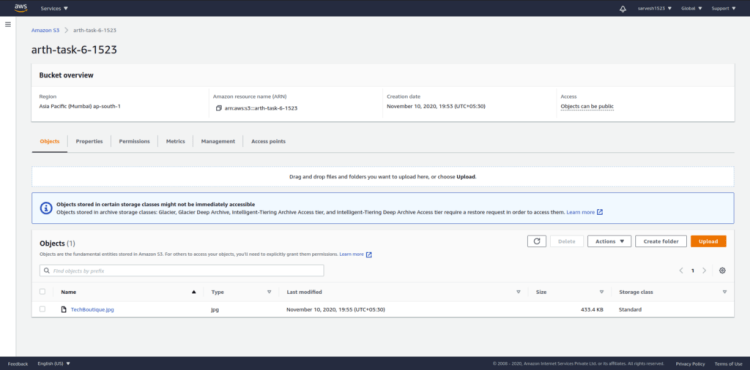 Once the bucket is ready, store some images or any data which you want to show or use in your website or web-application and provide the public access to it.