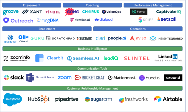 As mentioned in past posts, there has been a shift in the buying power at most organizations from the CIO level down to the individual end user, where employees are able to sample, test, and discover which applications are best suited for their specific needs. In turn, CIOs now advise and empower business units rather than drive purchasing decisions. This has been driven partly by the abundance of applications mentioned above. However, a primary driver of this shift is that SaaS offerings enable a frictionless, affordable, product-led GTM strategy. This strategy significantly decreases the cost of ownership for these products, allowing users to easily switch from one to the other without having to get executive approval. Given the multi-faceted job of sales reps, this provides them with the ability to potentially have a unique application for evert aspect of their job, regardless of its relevance to other functions or even other sales reps!