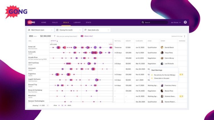 Sales intelligence platform “Gong” recently raised $200 million (show.me.the money!). The platform offers AI-driven insights for sales teams around the world with key clients such as Linkedin, Pinterest and others.