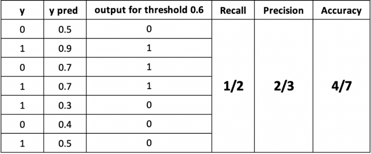 Out of all the classes, how much we predicted correctly, which will be, in this case 4/7. It should be high as possible.