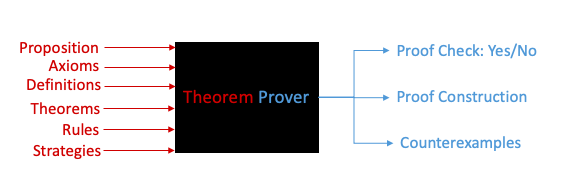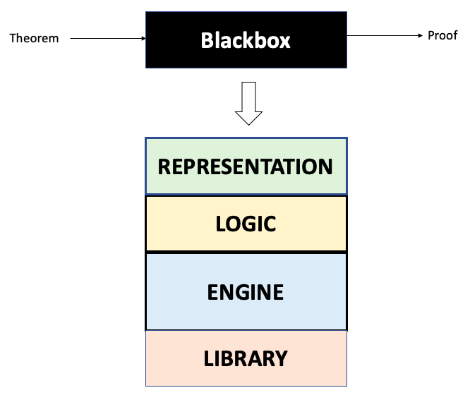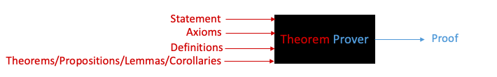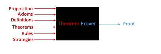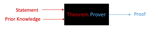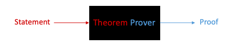 Before we get into why or how theorem provers differ from one another, let us frame the prover as a system with input, output and a process. Figure-5 shows a blackbox that is fed with a theorem. And the output is a proof.