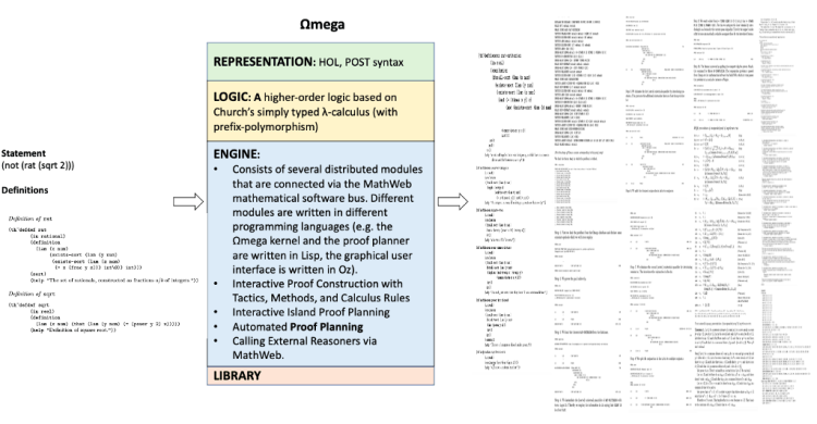 One trend to note is that the complexity of theorem provers has slowly been growing from simple systems to system of systems, i.e. pulling in the best reasoners from multiple sources. But this also means that maintaining such systems (for performance, robustness, accuracy, reliability) is getting harder. Let’s take a sneak peak at the architectures of some of them: ACL2, Omega, LEAN, ALLIGATOR, iGeoTutor/GeoLogic, Matryoshka and Keymaera.