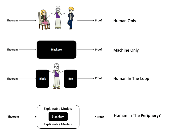A quick recap. In “The story of machine proofs — Part-1”, we covered how humans approached formal mathematical proofs, then introduced early attempts at machine proofs and ended with this picture depicting our journey to Centaur Theorem Provers. (Figure-1):