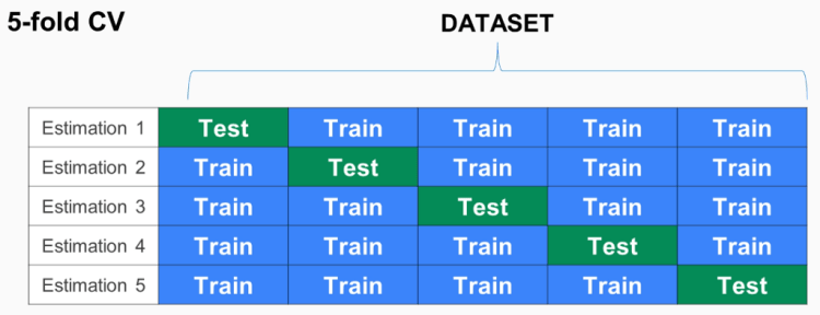 For each estimation, the dataset is divided into 5 folds, 4 for training and the remaining 1 for testing.