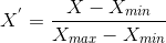 When the value of X is the minimum value in the column, the numerator will be 0, and hence X’ is 0 On the other hand, when the value of X is the maximum value in the column, the numerator is equal to the denominator and thus the value of X’ is 1 If the value of X is between the minimum and the maximum value, then the value of X’ is between 0 and 1.