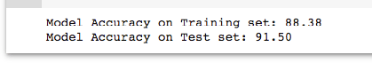 We are achieving 88.38% on the training data and 91.50 on the testing data, which is quite good as it is.