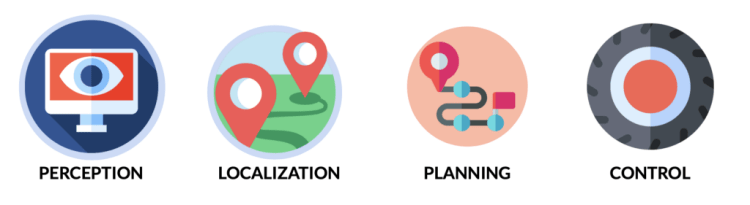 - In Planning, you define a trajectory from A to B, using perception and localization.