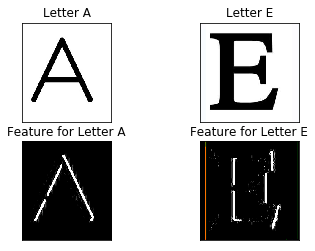 Intuitively, we can manually configure the system to classify letter A on basis of diagonal lines and letter E on the basis of vertical lines which are the features.