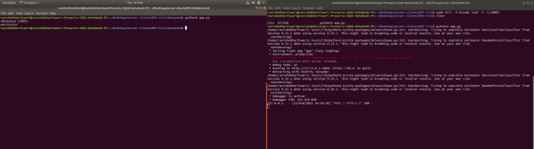 The above application is deployed and it displays the port number which is highlighted i.e. http://127.0.0.1:5000/. Now we need to replace the url in the client script to to run the code. The output is shown below.