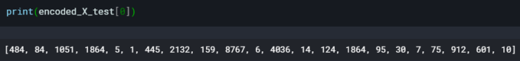 Finally, now all the tweets have been converted into a list of integers. We can check the first sentence in encoded_X_test list just to check whether things went as expected.