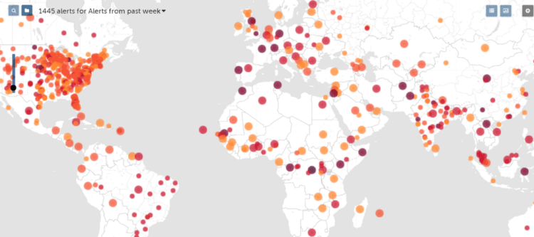 When you visit their website, you will be presented with this kind of interactive global map, which is being updated every hour.