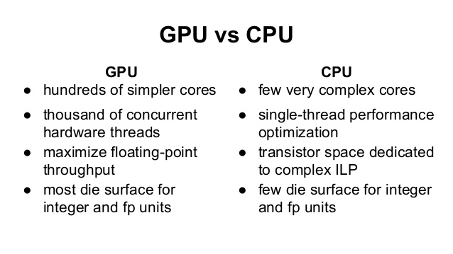 This is a nice graphical comparison of GPU vs. CPU from this Medium post: