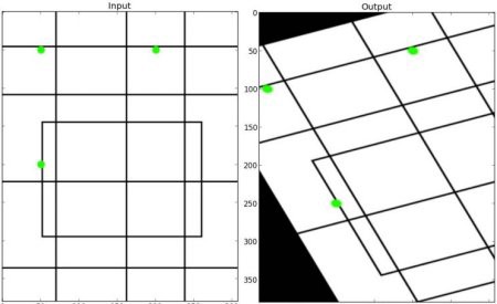 In the first example (i.e. figure 4), we rotated the original image by 90°. In the second example (i.e. figure 5), we performed an affine transformation of the original image.