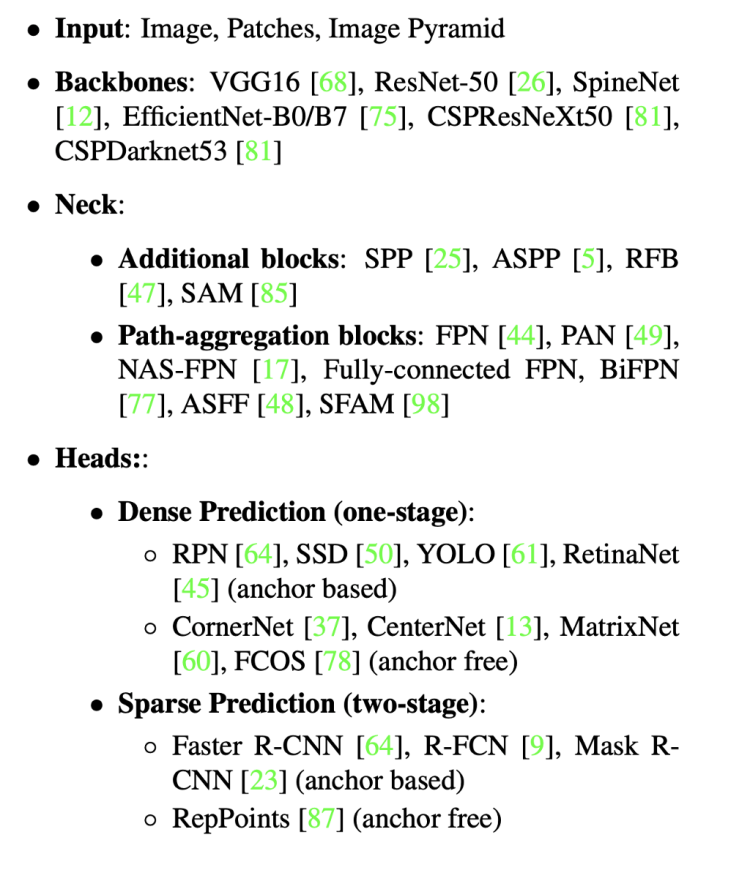 The essential role of the neck is to collect feature maps from different stages. Usually, a neck is composed of several bottom-up paths and several top-down paths.