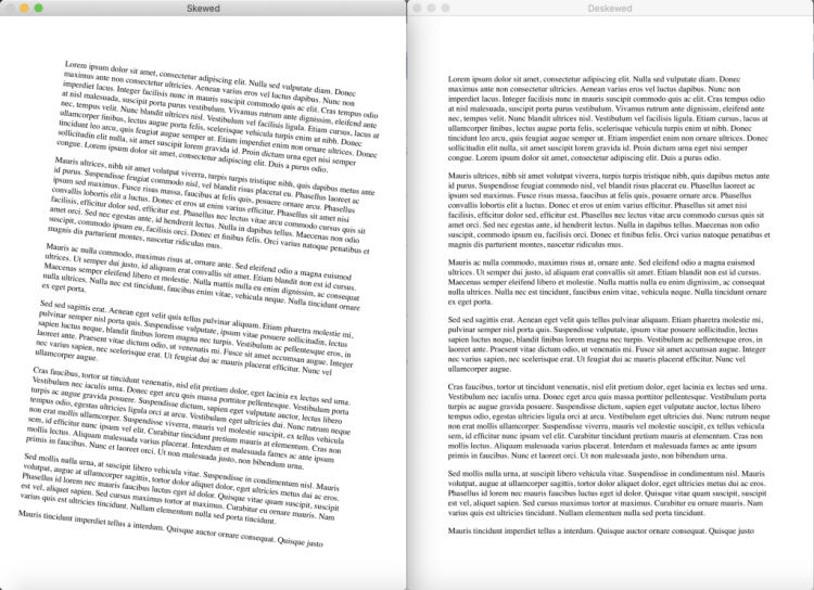 To test this approach I used a newly generated PDF file, with Lorem Ipsum text in it. The first page of this document was rendered with 300 DPI resolution (the most common setting when working with PDF documents). After that the testing dataset of 20 sample images was generated by taking the original image and randomly rotating it in the range from -10 to +10 degrees. Then I saved the images together with their skew angles. You can find all the code used to generate these sample images in my GitHub repo, I won’t go over it in detail here.