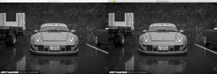 Now we’ll need to apply some pre-processing in OpenCV to make contour detection work. Namely we convert the image to gray scale, apply bilateral filter with cv2.bilateralFilter and Gausian blur with cv2.GaussianBlur: