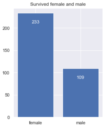 Now I will also do the similar thing in order to find out the number of survived persons based on their gender. Notice that here I use sum() instead of count() because we are only interested to calculate the number of survived passengers which are represented by number 1. So it’s kinda like adding 1s in each group.