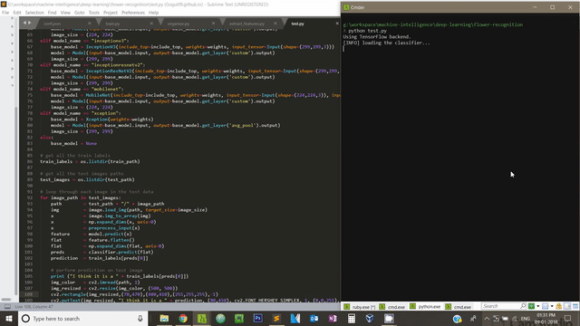 “results” : “output/flowers_17/inceptionv3/results.txt”, “classifier_path”:“output/flowers_17/inceptionv3/classifier.pickle”,