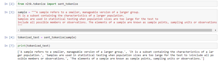 First, we import sent_tokenize and then pass it a paragraph as an argument, which outputs a list that contains all the sentences as individual elements.