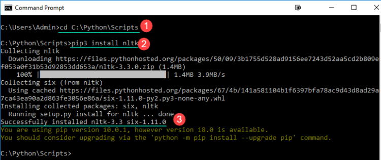 3. Enter pip3 install nltk to install NLTK