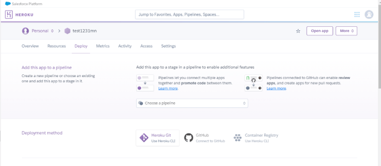 As mentioned in the section 2, after login in the heroku platform follow the below step: