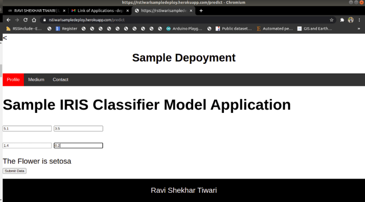 The overview of the deployed web application with Iris Application: Link is shown below.
